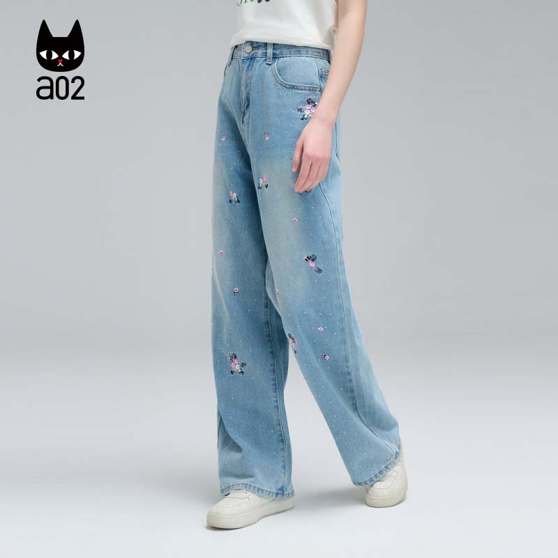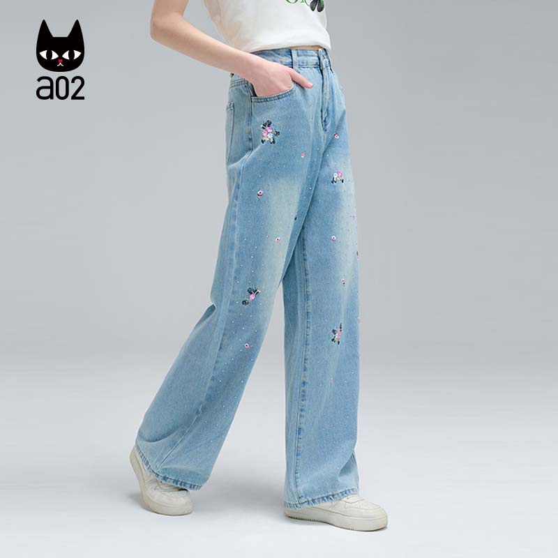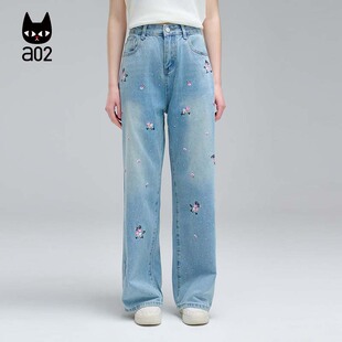 子设计感夏装 a02国风绣花牛仔裤 宽松直筒裤 新款 女2025夏季