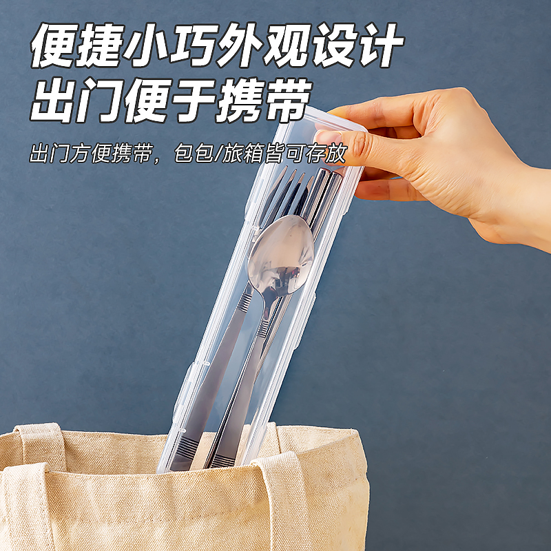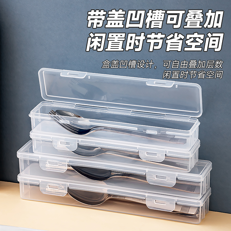 餐具收纳盒便携防尘带盖整理盒旅游户外学校可叠加筷勺叉空盒