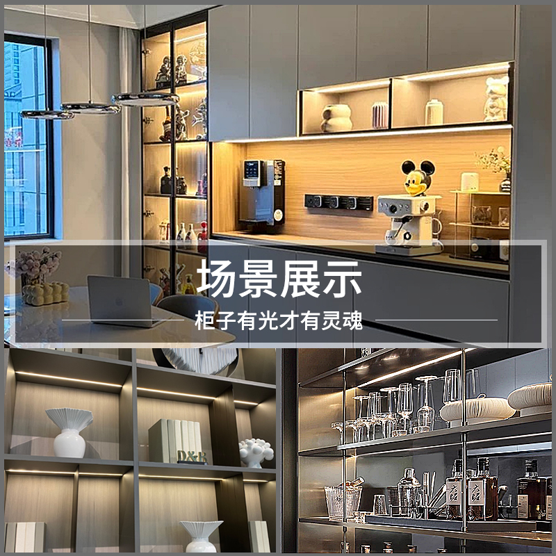 隐形嵌入式 灯条超薄无边柜子COB橱柜灯带衣柜酒柜层板线条灯暗装