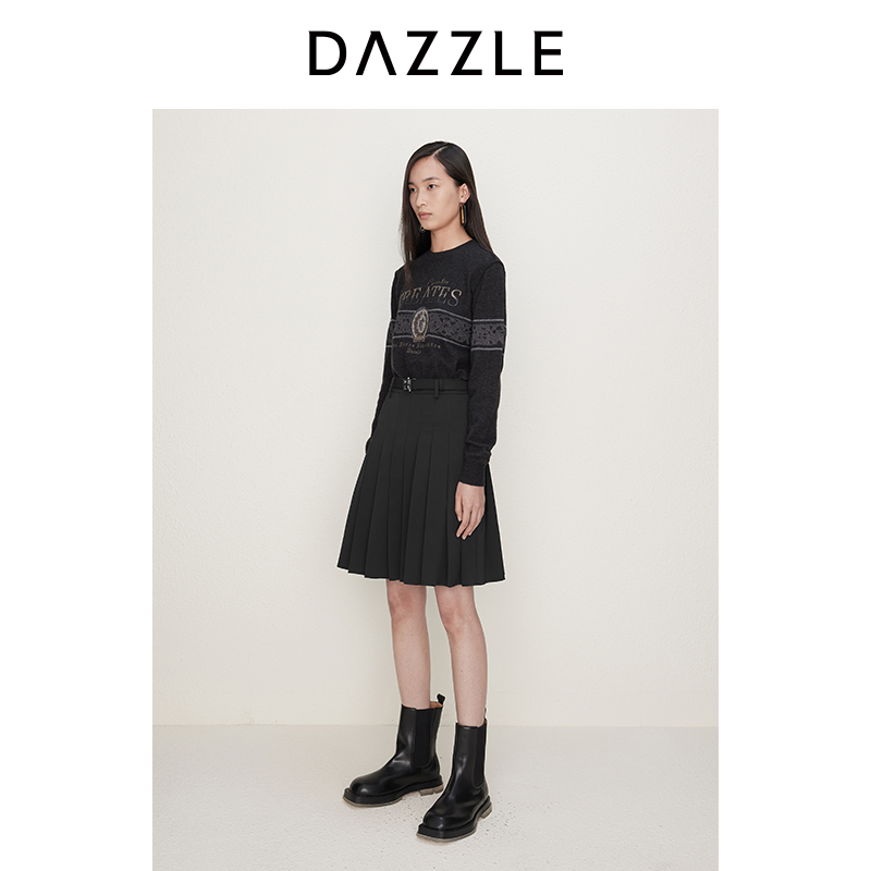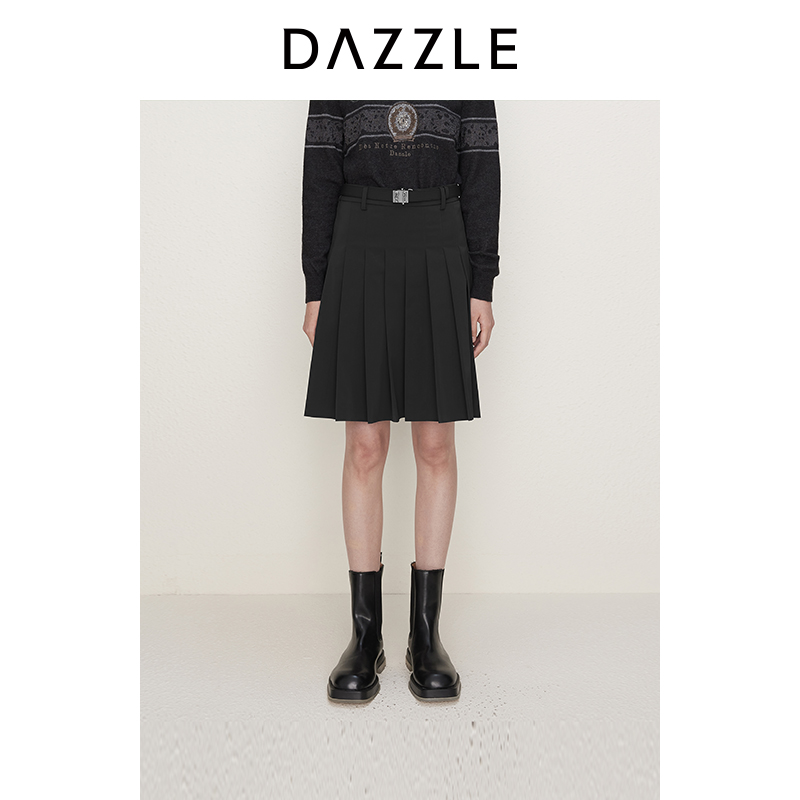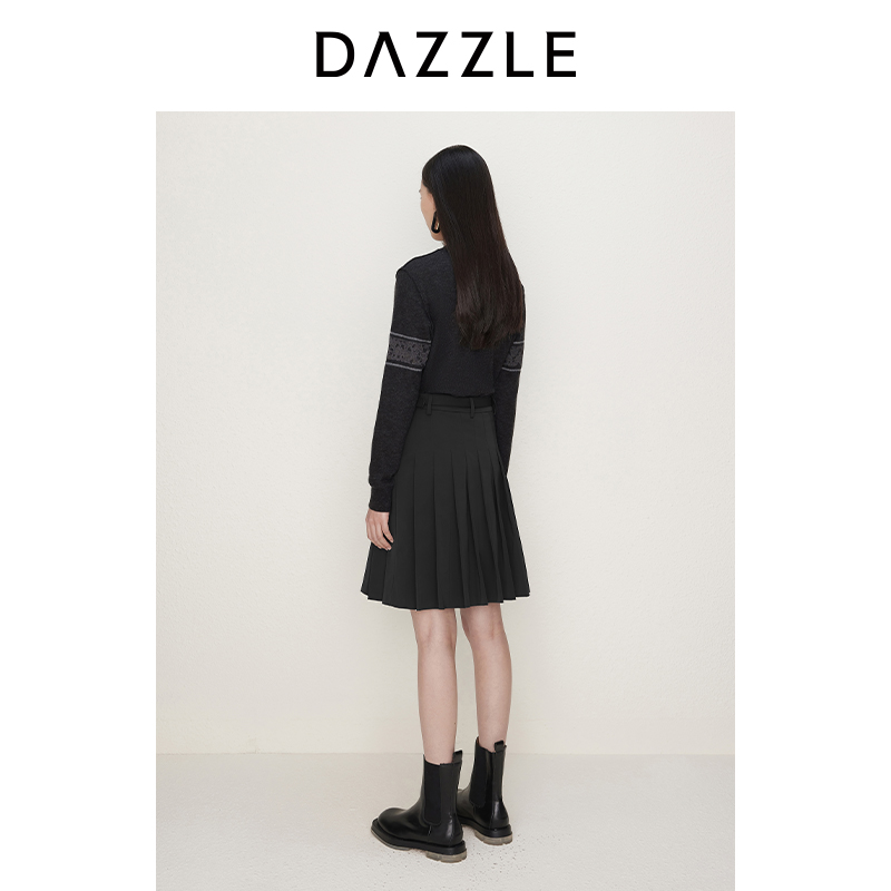 简约高腰半身裙甜美DOUBLOVE贝爱2025秋冬新款 格雷系百褶裙