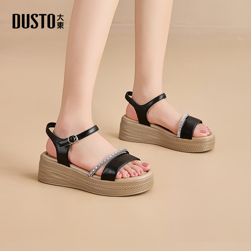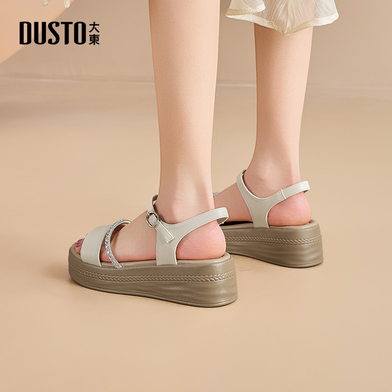 男夏季 真皮厚底爸爸拖鞋 新款 男士 男防滑 牛皮休闲沙滩鞋 红蜻蜓凉鞋