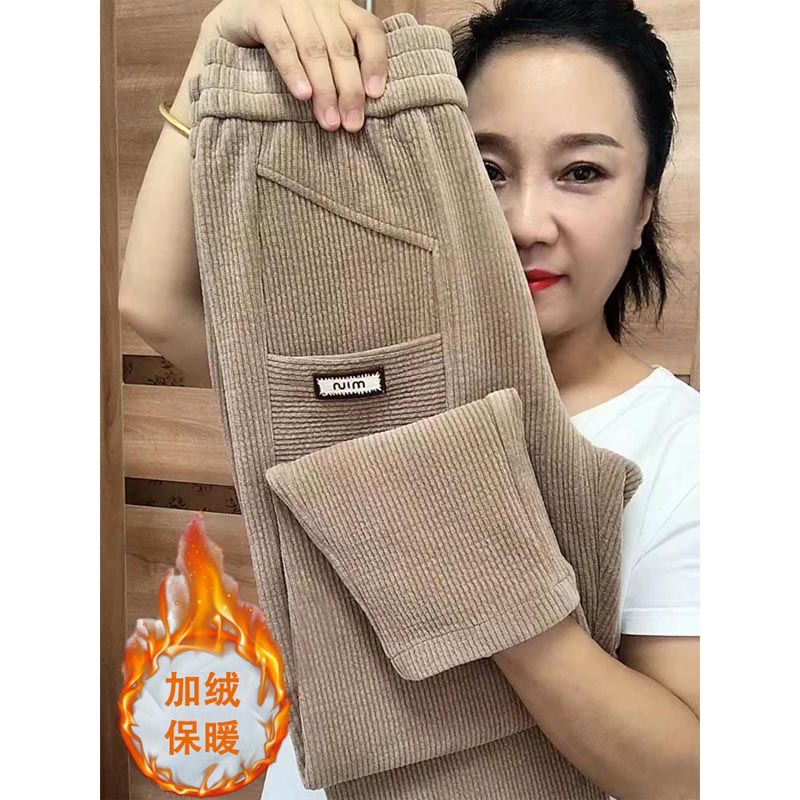 宽松高腰灯芯绒妈妈长裤 女士秋冬季 加绒加厚休闲裤 哈伦裤 2023新款