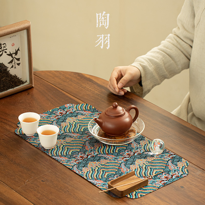 桌旗茶布茶道配件 防水禅意干泡单人茶巾布垫子 中式 双面海浪茶席