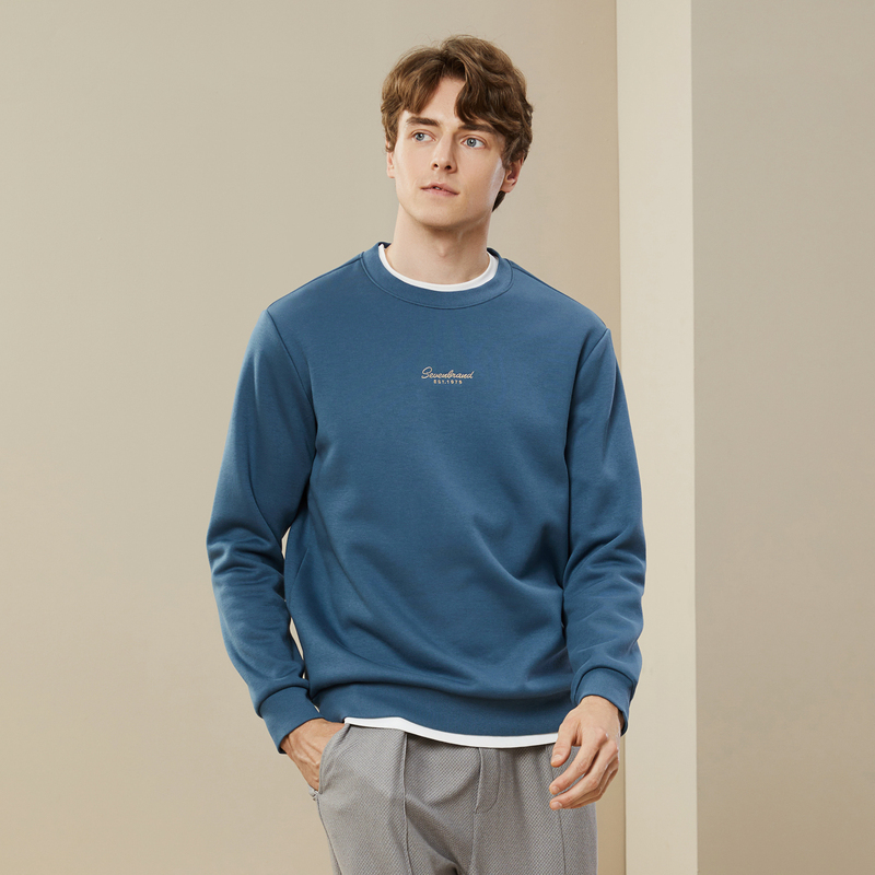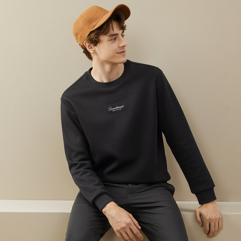 圆领卫衣男厚款 柒牌男装 时尚 休闲简约长袖 上衣 T恤衫 加绒
