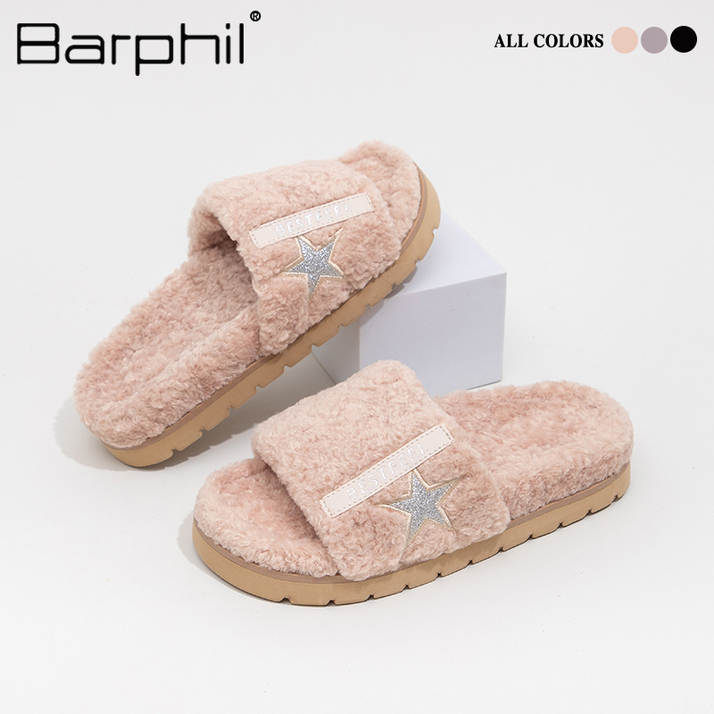 女情侣软底毛毛拖鞋 棉拖鞋 外穿厚底 秋冬新款 Barphil福利清仓拖鞋