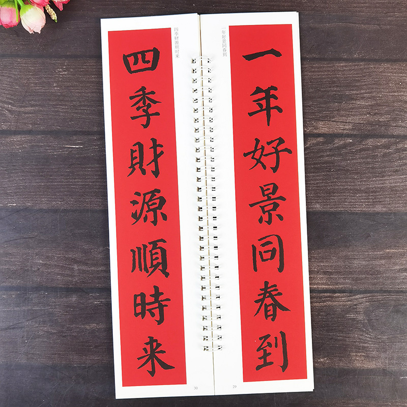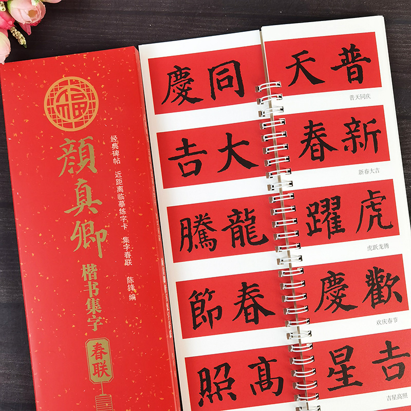 颜真卿楷书集字春联 碑帖近距离临摹练字卡颜真卿勤礼碑多宝塔集字春联毛笔写春联颜真卿集字春联字卡天津人美 43幅对联12横批经典