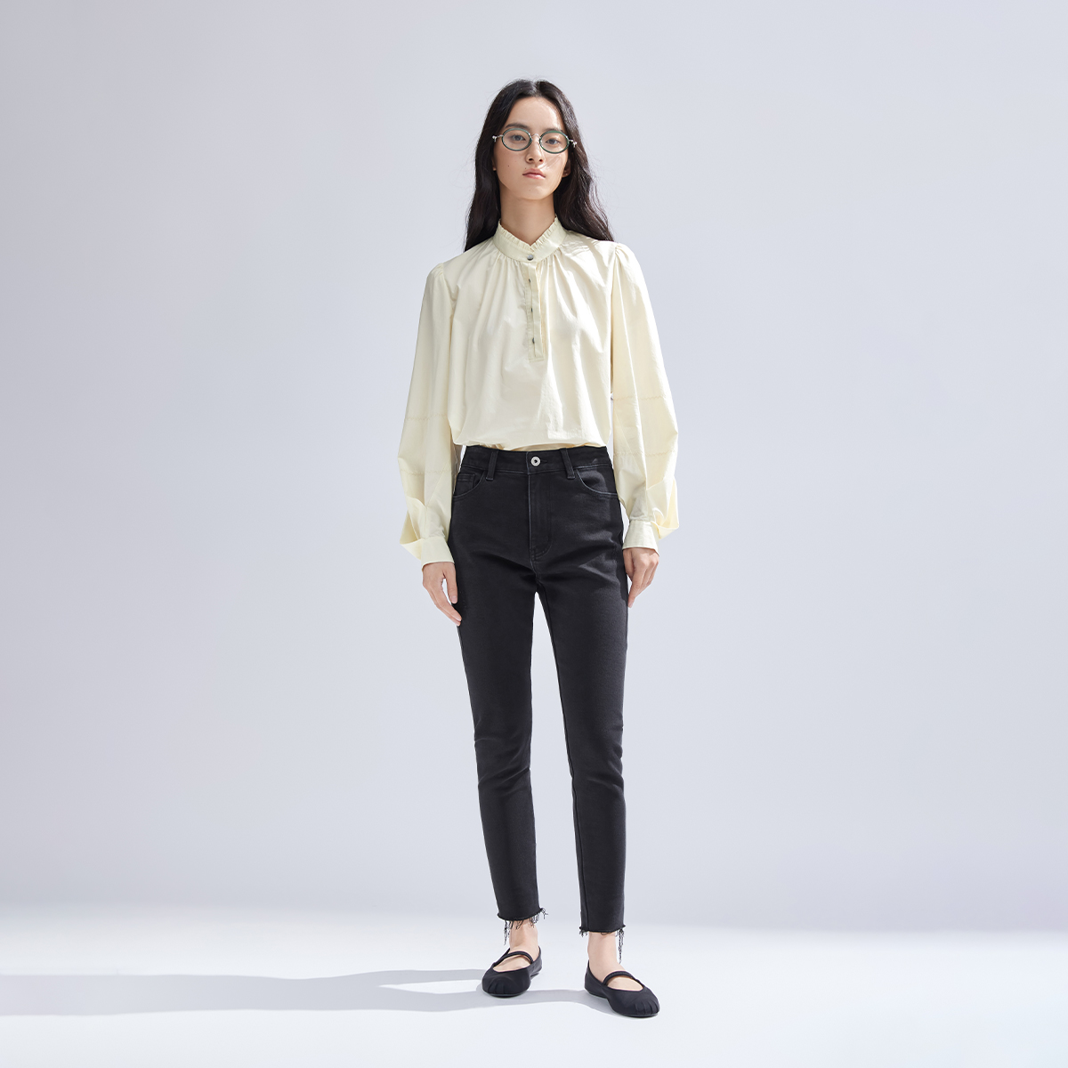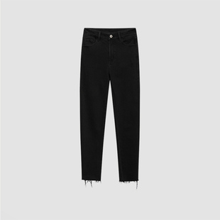 毛边小脚铅笔裤 高腰时髦修身 BDR1KD0165 女商场同款 播黑色牛仔裤