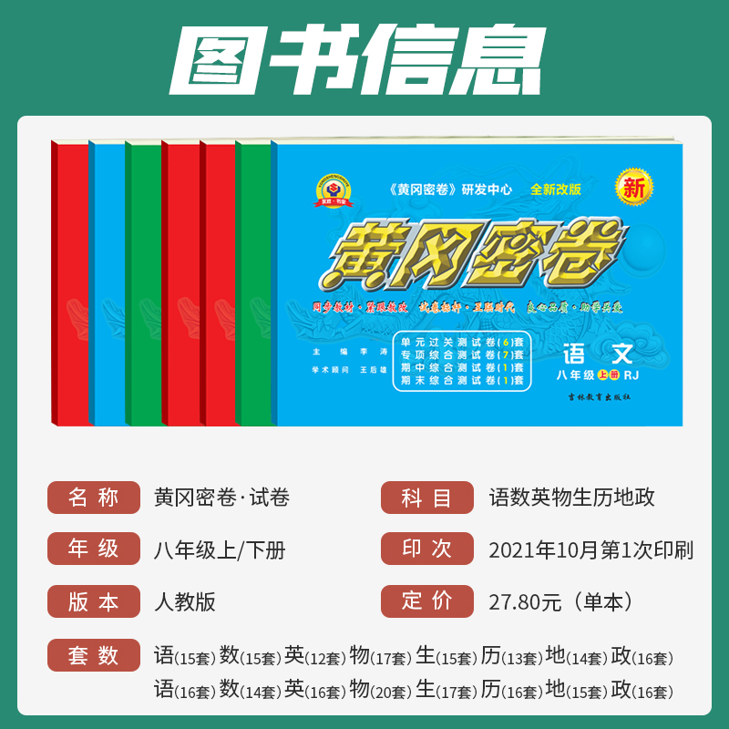 初中黄冈密卷七八九年级上下册2024人教版 专项提升练习初二卷全套期中期末复习试卷 数学语文英语物理生物历史道法地理同步单元