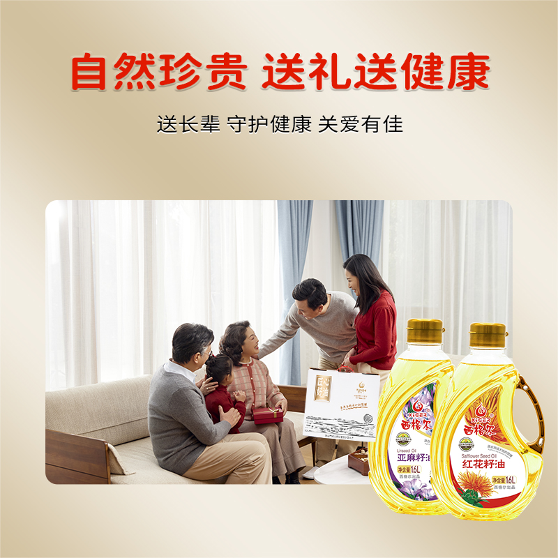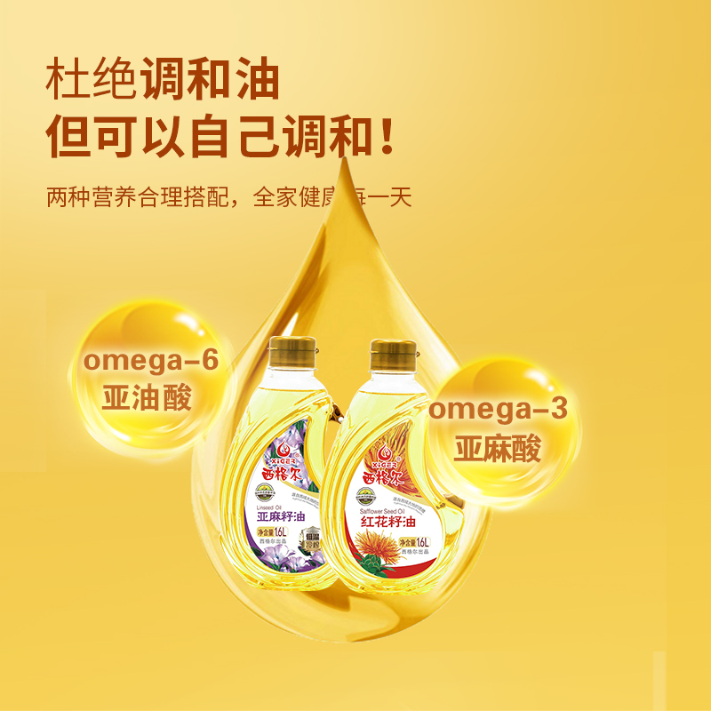 新疆红花籽油1.6L 亚麻籽油1.6L黄金搭档送礼老人健康营养好品质