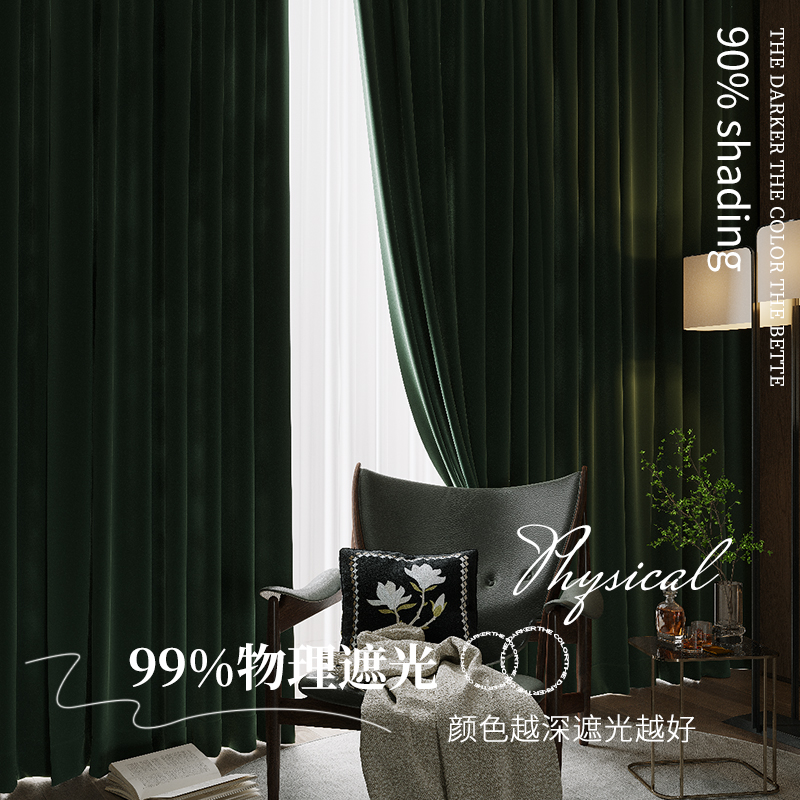 窗帘全遮光卧室超强马路隔音抹茶绿2025年新款 客厅阳台隔热遮阳布