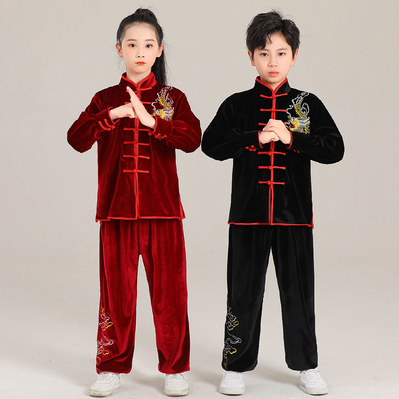 秋冬款 儿童武术服表演服男女成人太极演出服长袖 武术训练竞赛服装