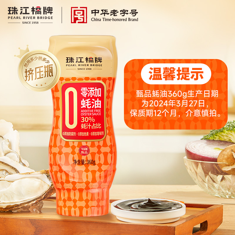 珠江桥牌甄品蚝油360g挤挤装 耗油家用豪油毫油上等 0添加挤压式