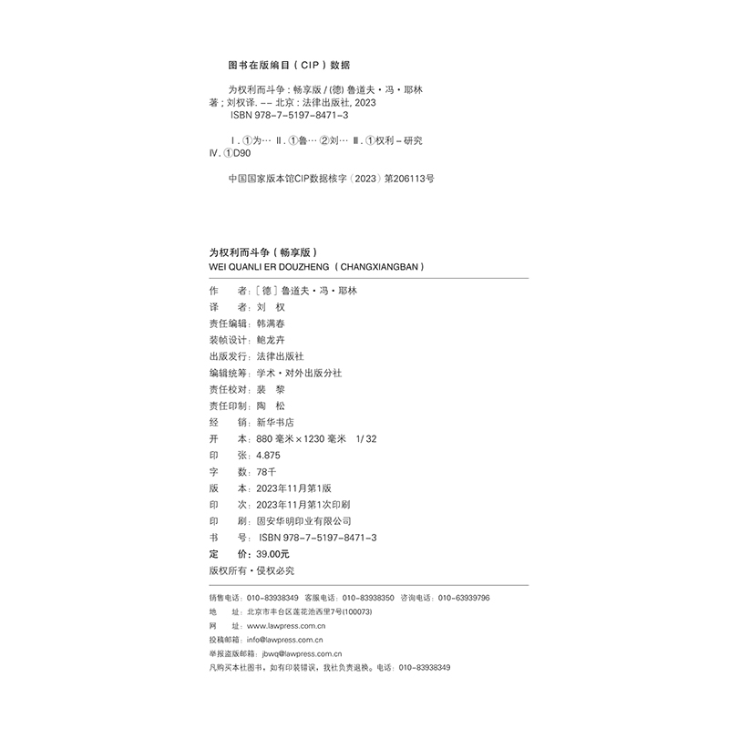 罗翔老师推荐 社9787519784713 法律出版 法律 为权利而斗争 畅享版 目 法学入门书 你 作品 2023新书 罗马法 耶林经典 精神