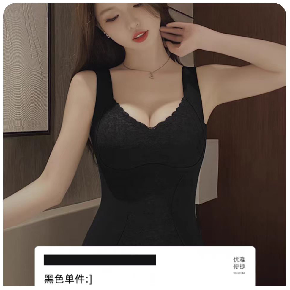 雪竹加绒保暖背心女士带胸垫德绒内衣秋冬季 低领打底内搭加厚款