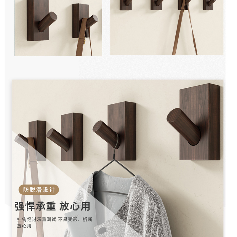胡桃木真空吸盘挂钩强力承重免打孔入户门后厨房卫生间浴室挂衣钩