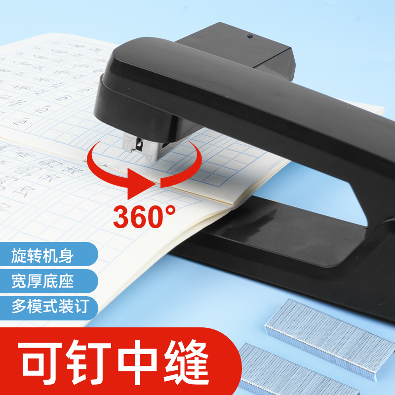 360度可旋转订书机学生用钉书机订书器大号办公用加厚家用型多功能迷你小号钉省力定厚书订中缝装 订用品