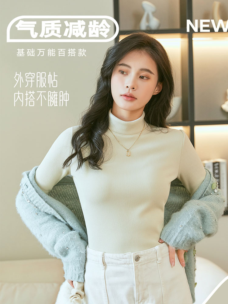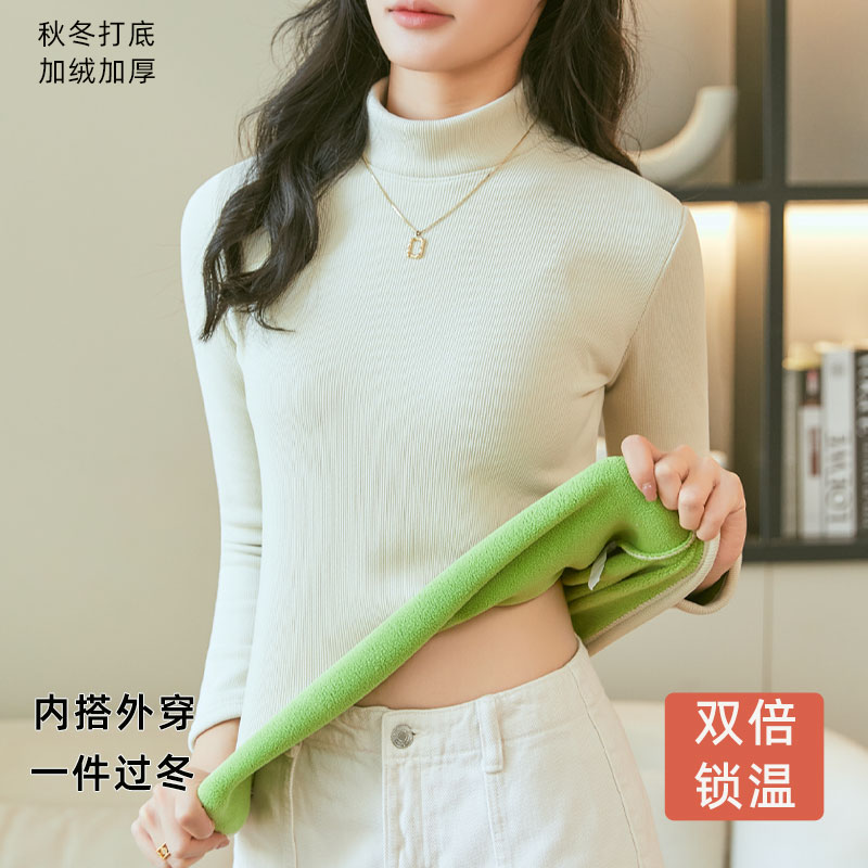 长袖 加厚内搭一体绒新款 T恤保暖内衣女上衣 女中领冬季 加绒打底衫