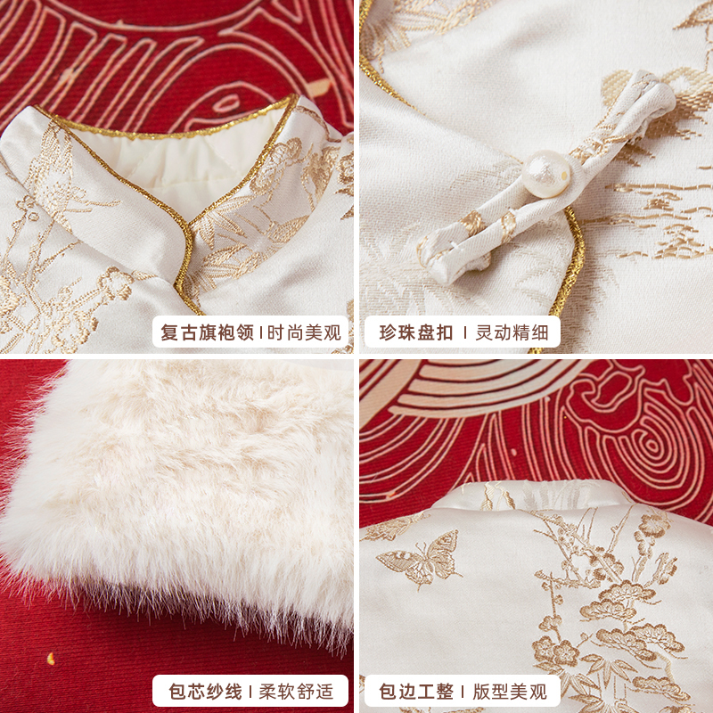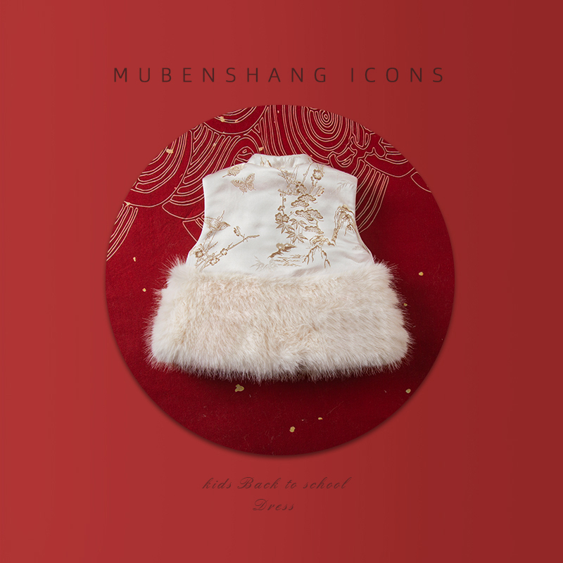 宝宝背心拜年服提花刺绣 中国风2025新款 木本尚女童冬装 马甲唐装