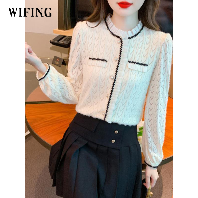 小香风长袖 加绒加厚衬衫 蕾丝衫 洋气减龄百搭小衫 冬季 未风2025法式
