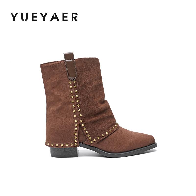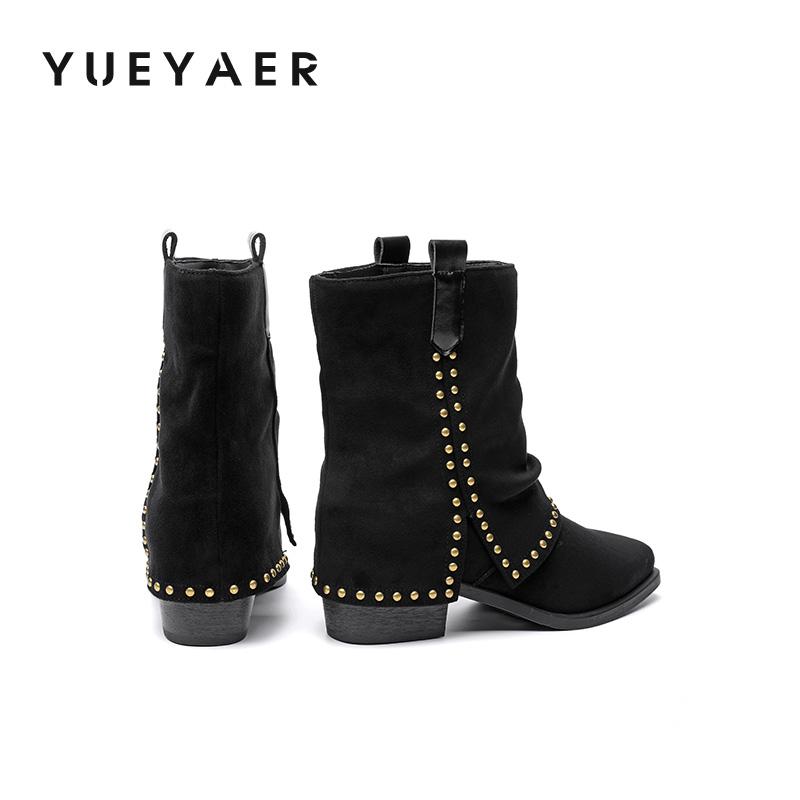 绒面女士中筒加绒靴子女 冬季 月芽儿尖头裤 管靴潮酷短靴女新款