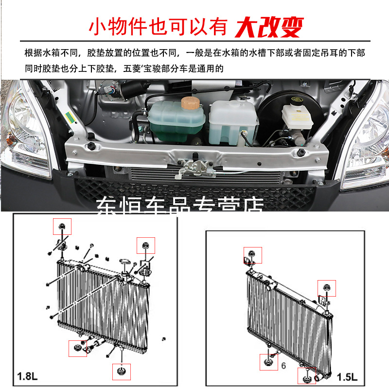 适配五菱荣光小卡 新卡星驰星辰水箱固定支架胶垫散热器缓冲胶套