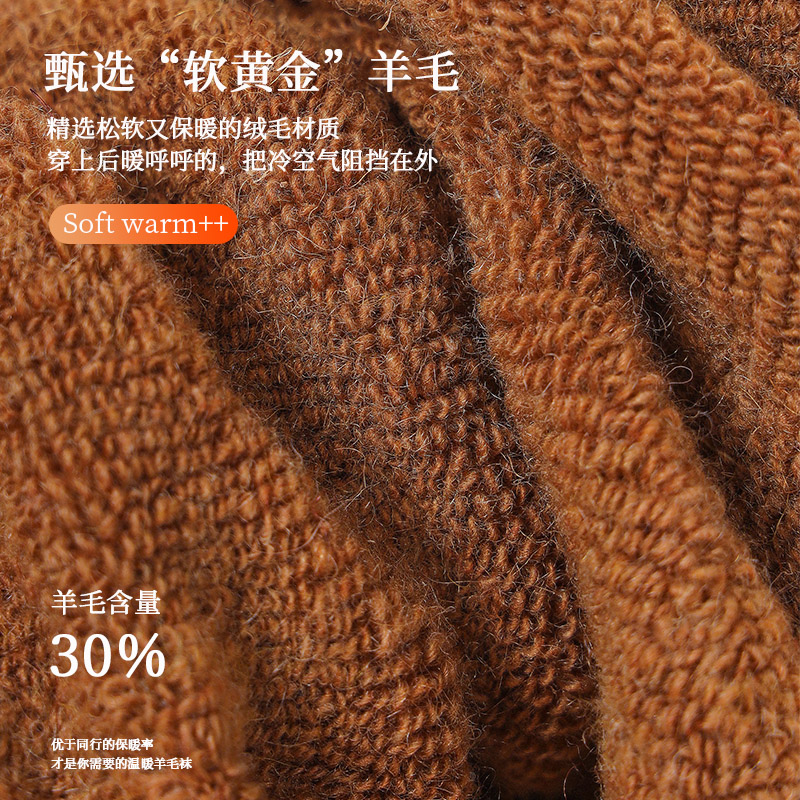 棕咖色月子长袜 乐福鞋 木耳边堆堆袜子女秋冬季 纯棉中筒袜配小皮鞋