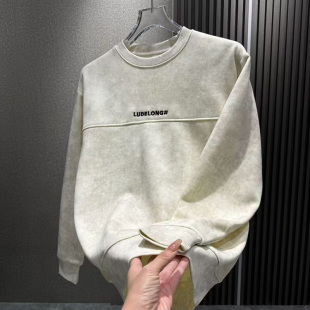 上衣 百搭保暖衣青年加绒休闲帅气圆领卫衣长袖 男2025秋冬新款 时尚