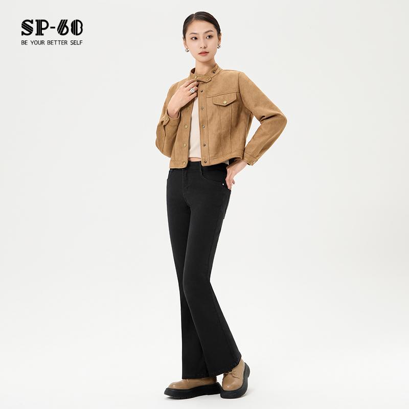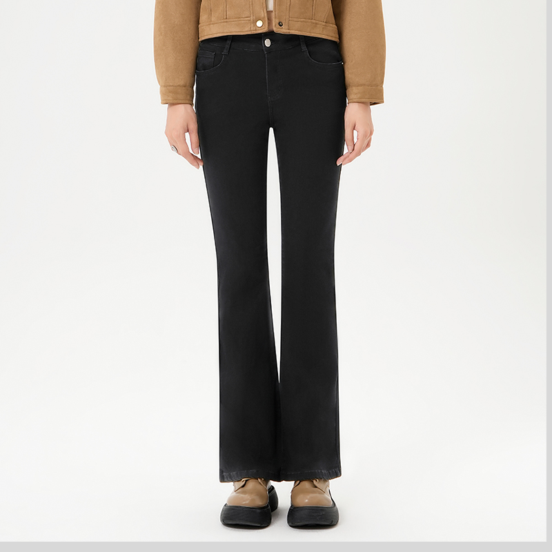 新款 子秋冬季 保暖显瘦百搭高弹复古显高 加绒微喇叭裤 sp68牛仔裤