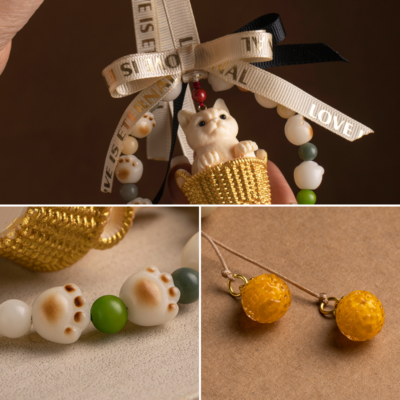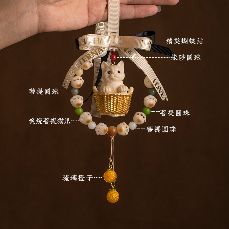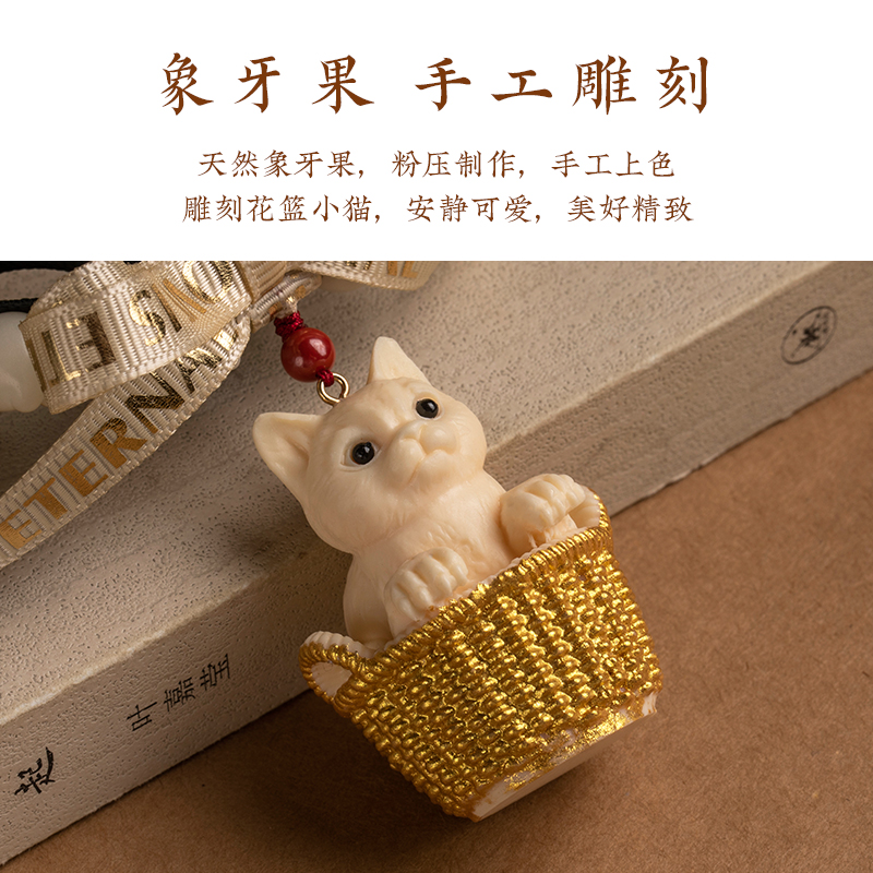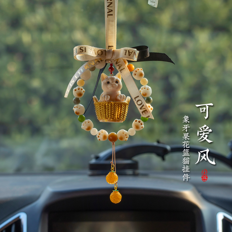 加噜天然象牙果招财猫汽车挂件车载后视镜挂饰高档创意可爱小礼物
