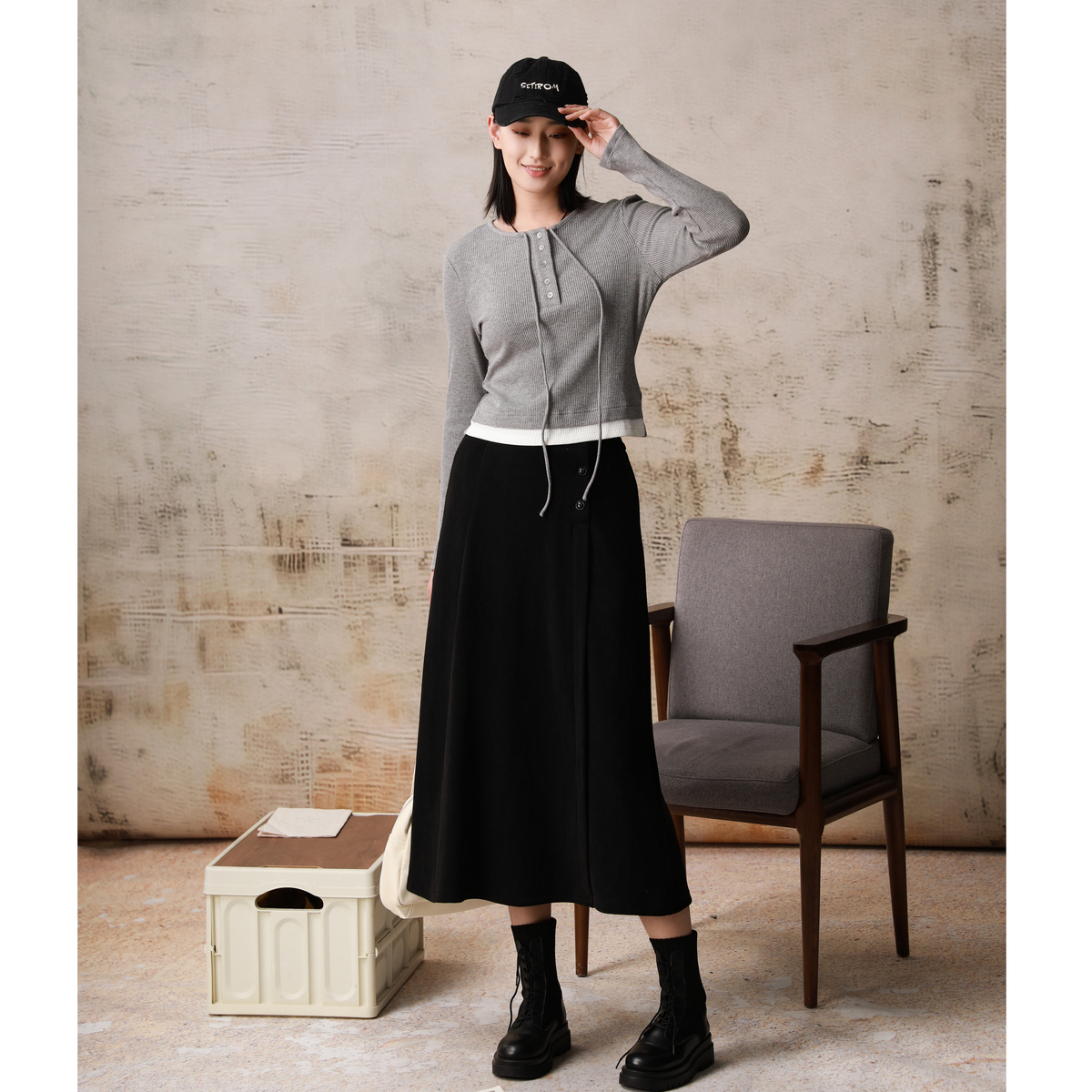 RUISHI芮时欧若风丁达尔裙仿真丝光泽感压褶半身裙女春秋 现货