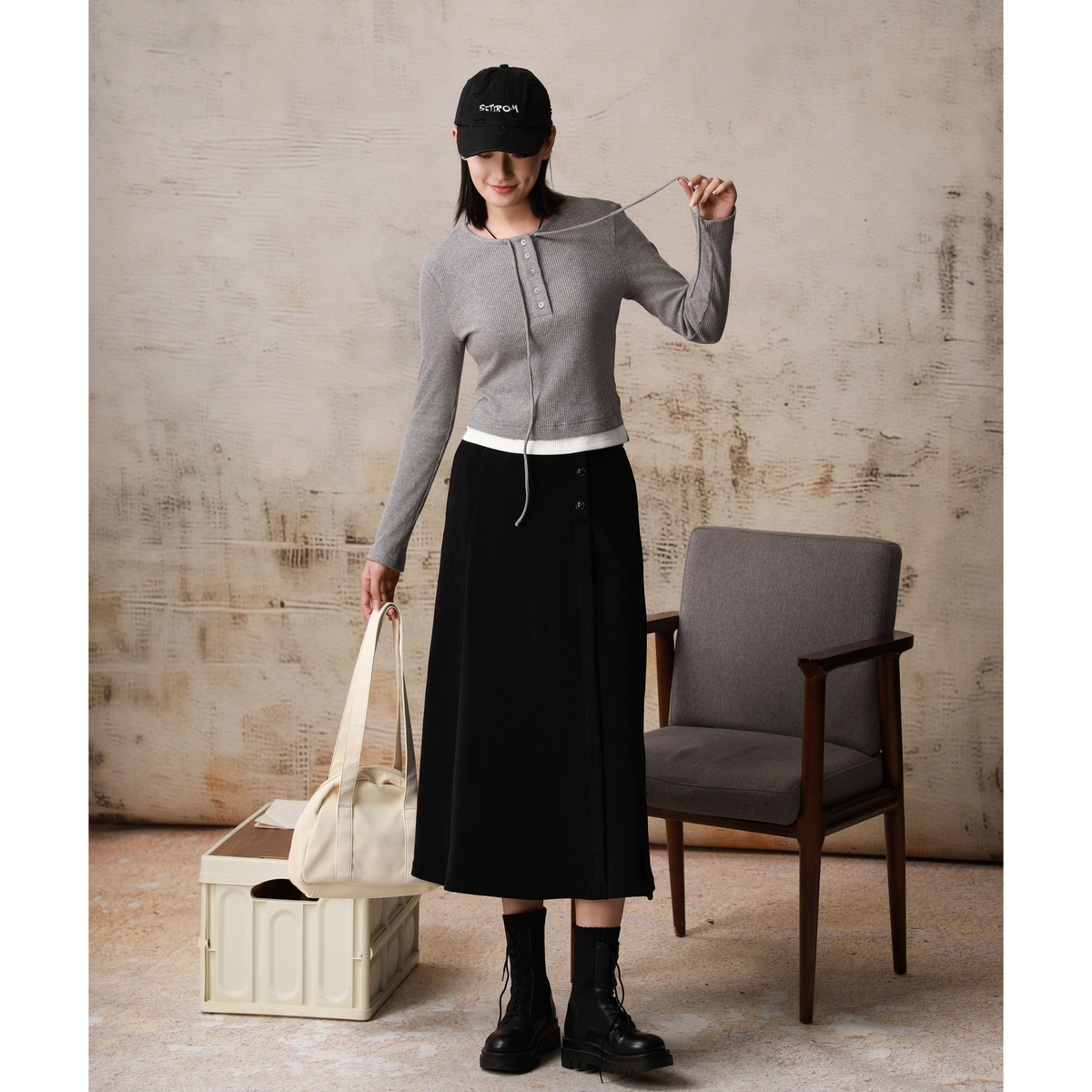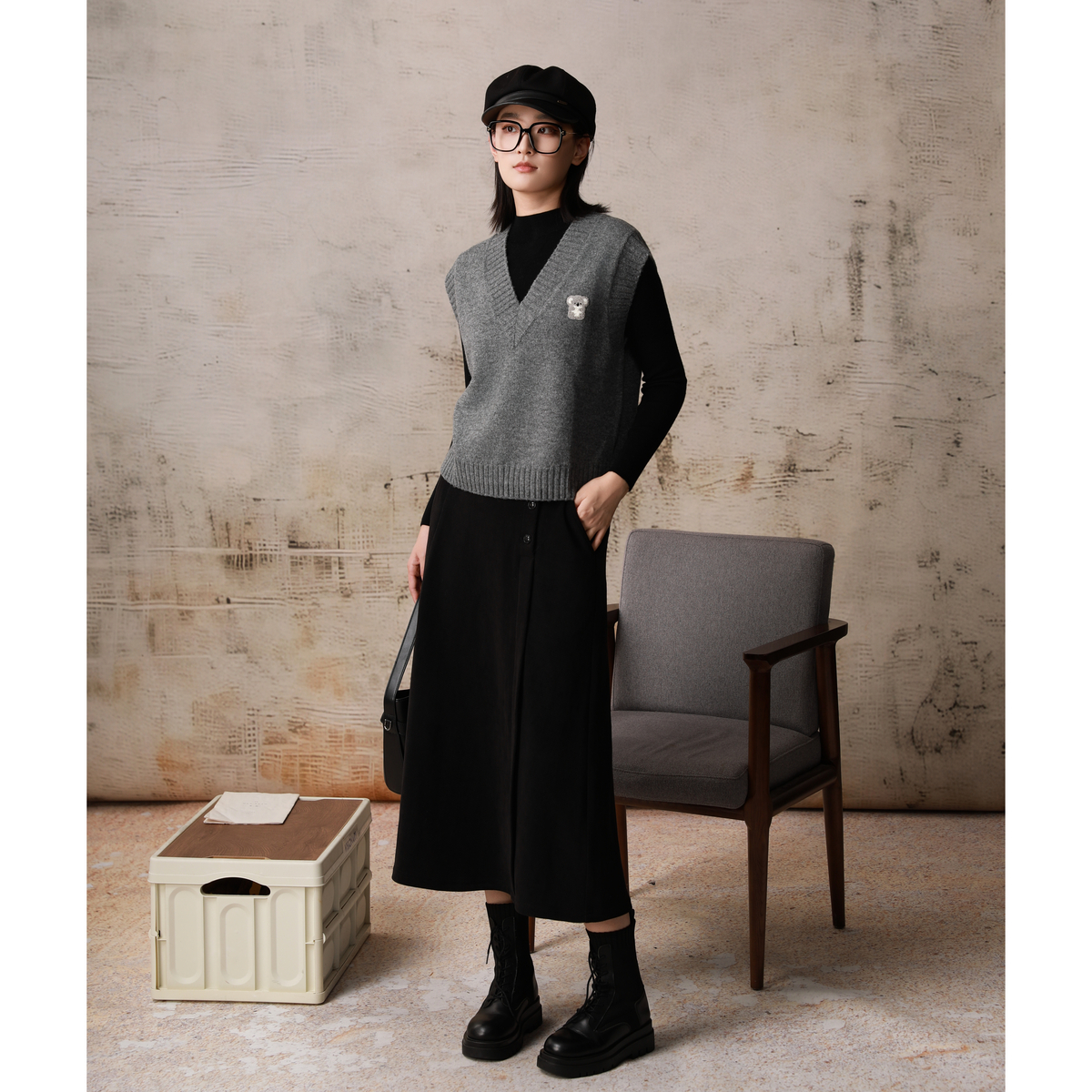 RUISHI芮时 可机洗60支羊毛知识分子风A字遮肉显瘦百褶半身裙女冬