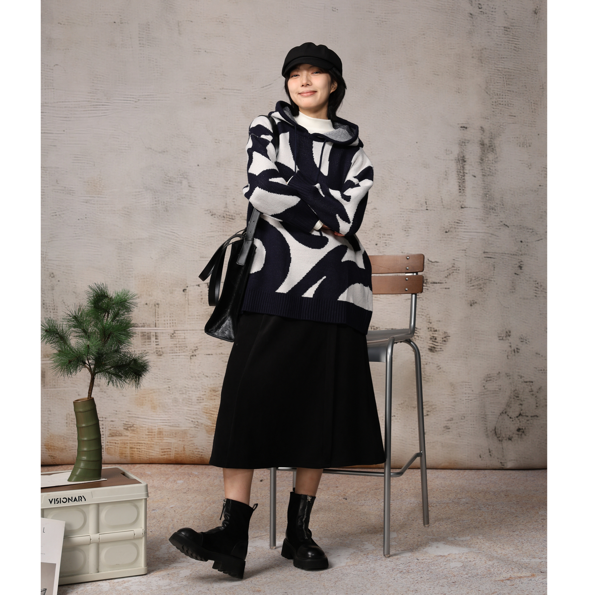 RUISHI芮时 知识分子风连帽绑带上衣百褶半身裙女秋 午后书店