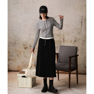优雅菱格简约H型长裙 时尚 秋水伊人毛呢设计半身裙2025年冬季 新款