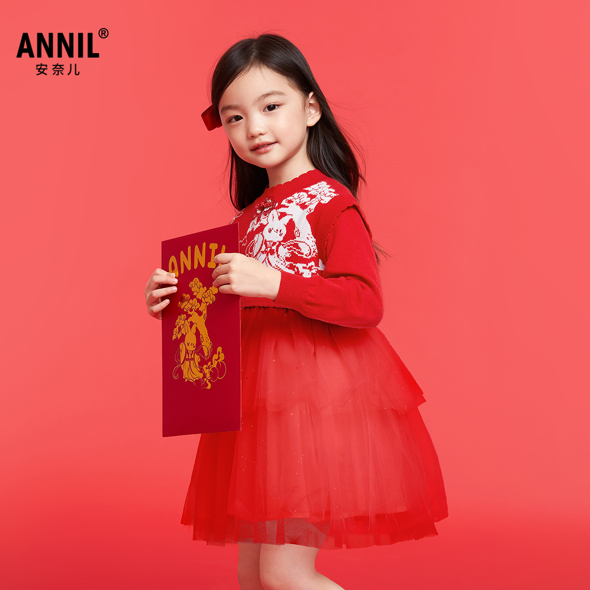 毛衣连衣裙2025春新款 女童长袖 安奈儿童装 XG513509 商场同款