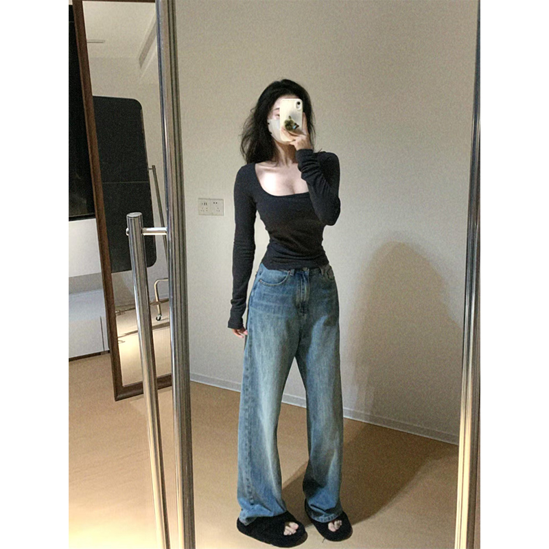 加绒保暖T恤 上衣辣妹显瘦纯欲小衫 方领德绒打底衫 女秋冬内搭短款