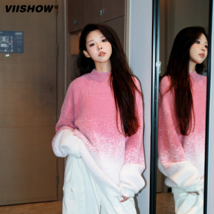女气质长袖 多巴胺新款 上衣 2025秋冬季 阔色彩色毛衣宽松圆领针织衫