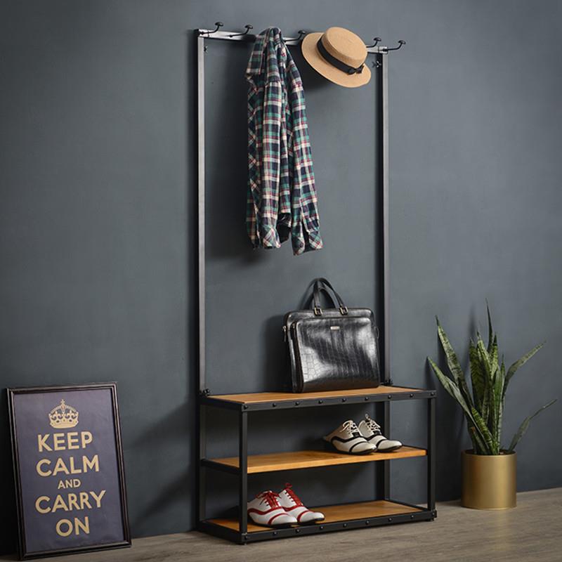 北欧换鞋 架柜铁艺简约 凳挂衣架一体家用进门口衣帽架玄关可坐穿鞋