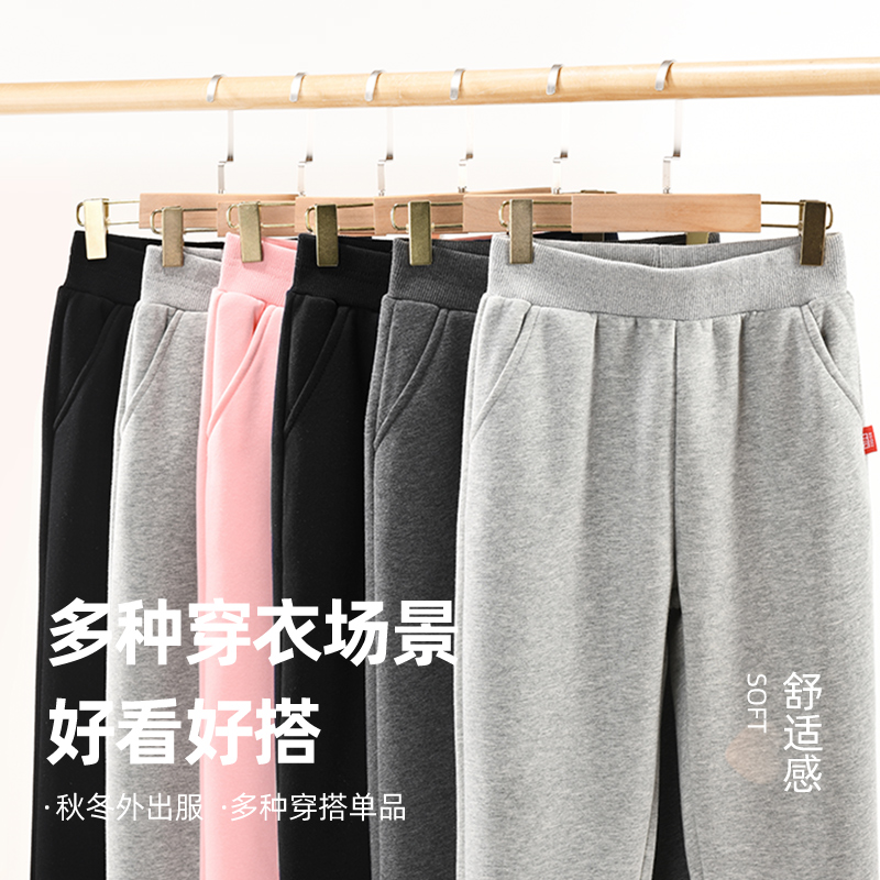 胖mm慵懒风松弛感加绒运动休闲裤 女秋季 子 黑色软糯奶芙阔腿裤 大码