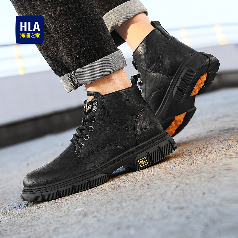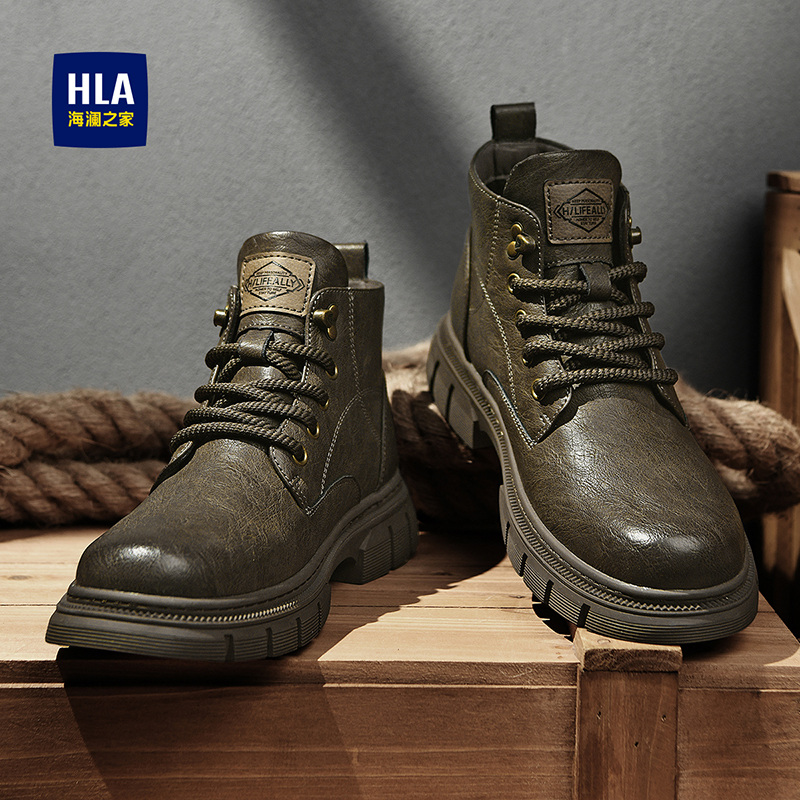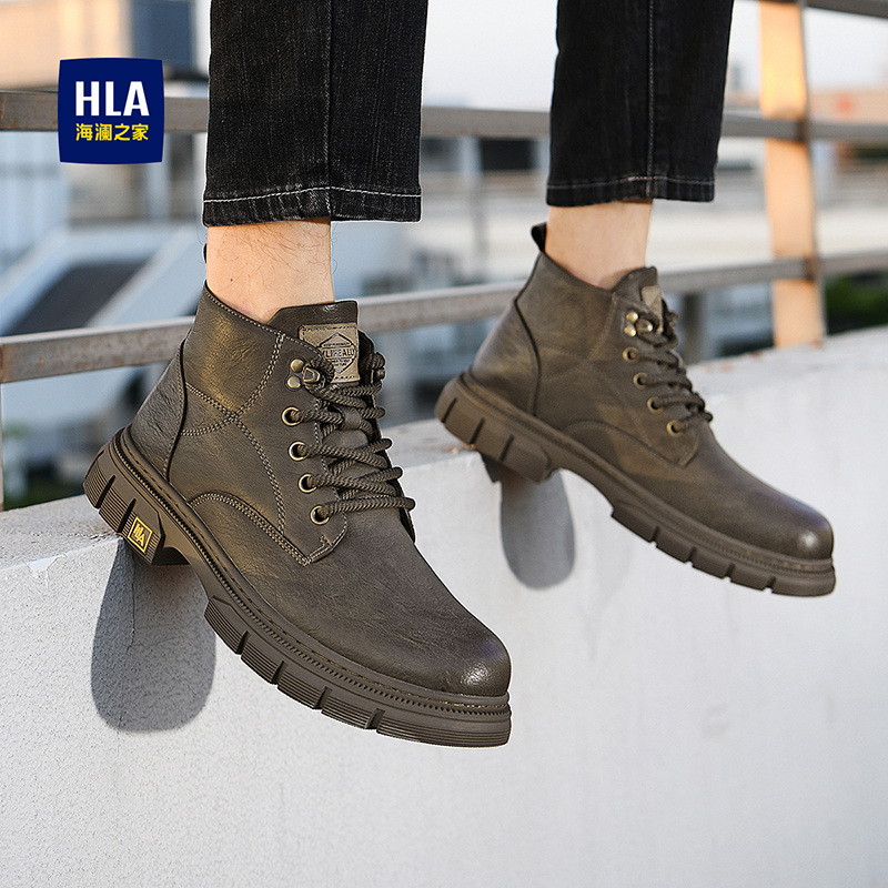 靴靴子经典 HLA 春夏网红中帮工装 新品 复古潮流马丁靴 海澜之家男鞋