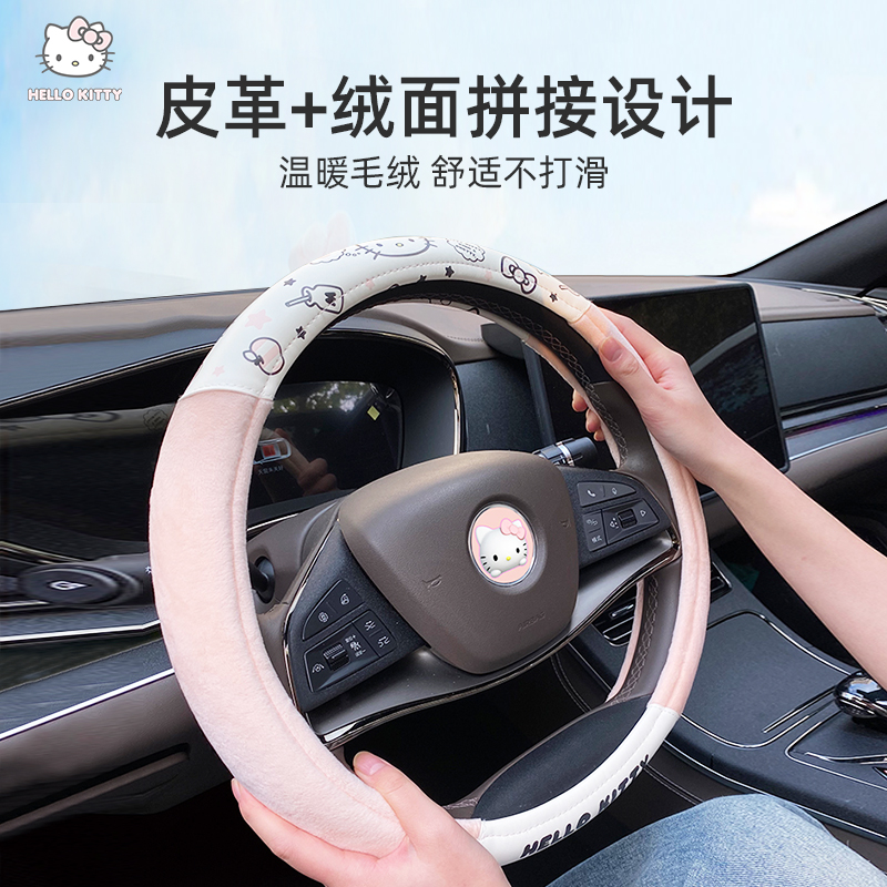 kitty方向盘套2025新款 通用女士卡通D型比亚迪欧拉 把套保护套四季