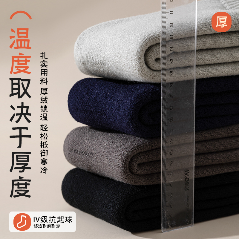 袜子男士 加绒加厚羊绒中筒袜超厚保暖羊毛长筒长袜睡眠地板袜 冬季