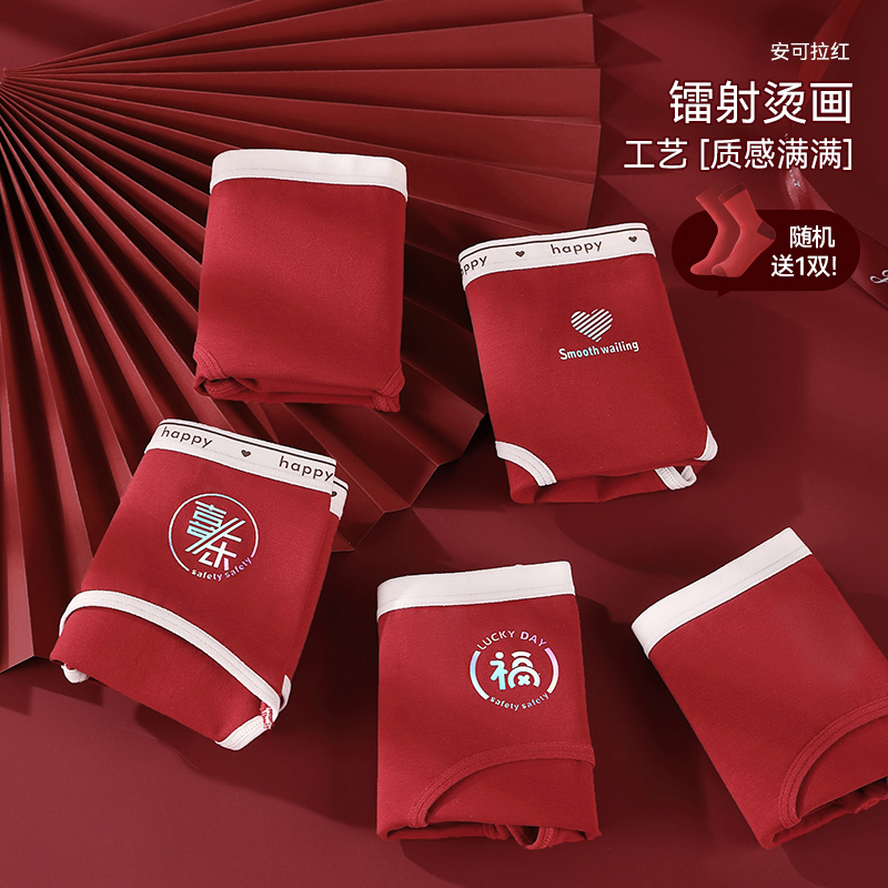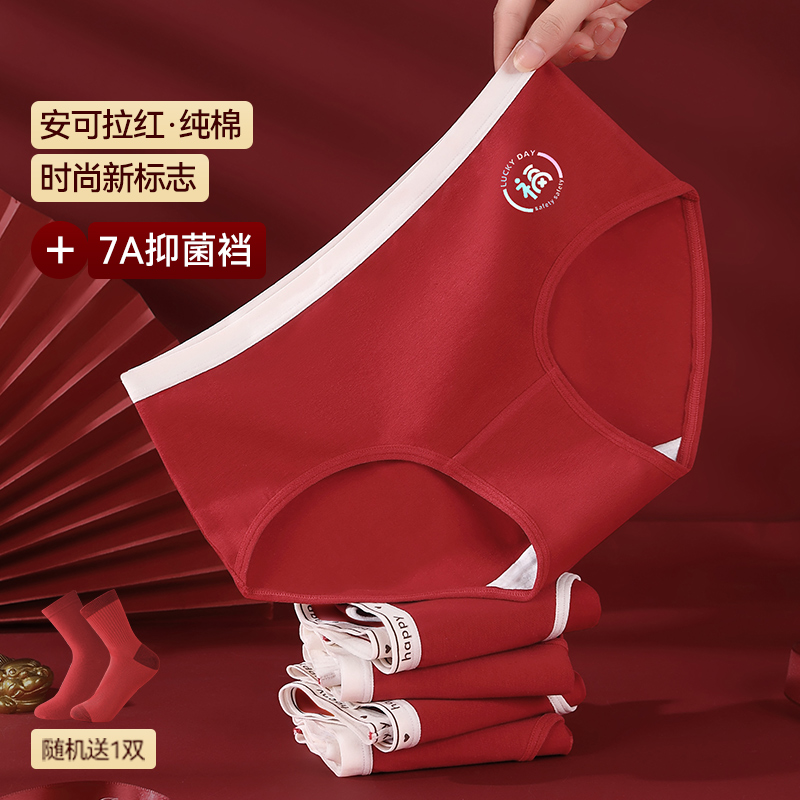 红色喜庆本命年全棉抑菌裆少女三角裤 七色纺纯棉女士内裤 2025新款