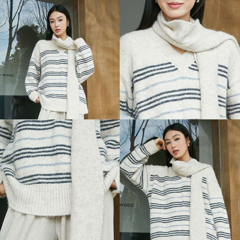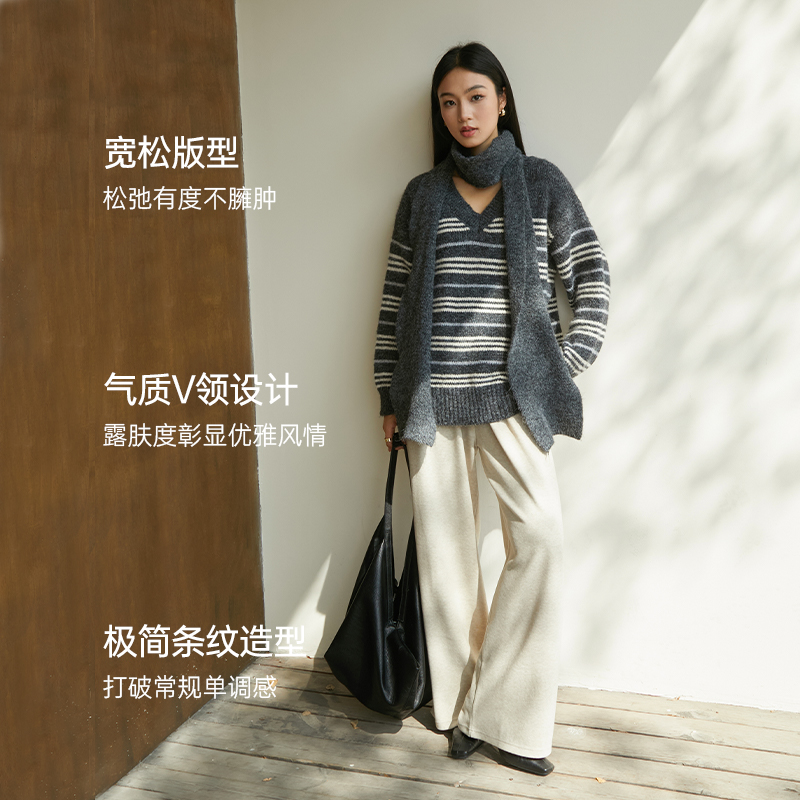 慵懒风宽松套头针织衫 SEENFAAN盛放彩虹条纹提花圆领毛衣女秋季 季
