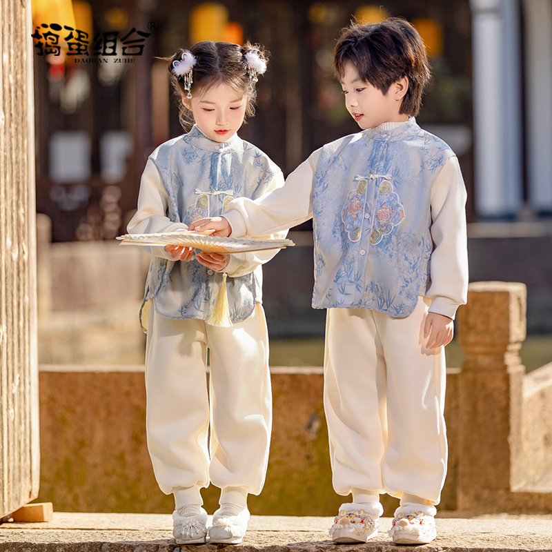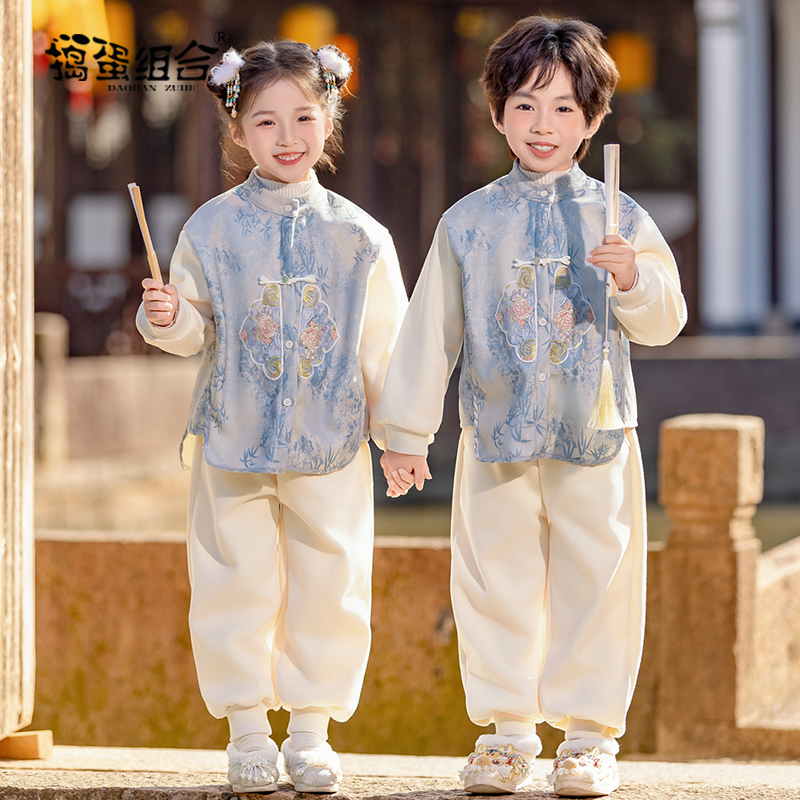 女童拜年服新年装 唐装 高端国风演出服秋冬小少爷中式 汉服男童冬款