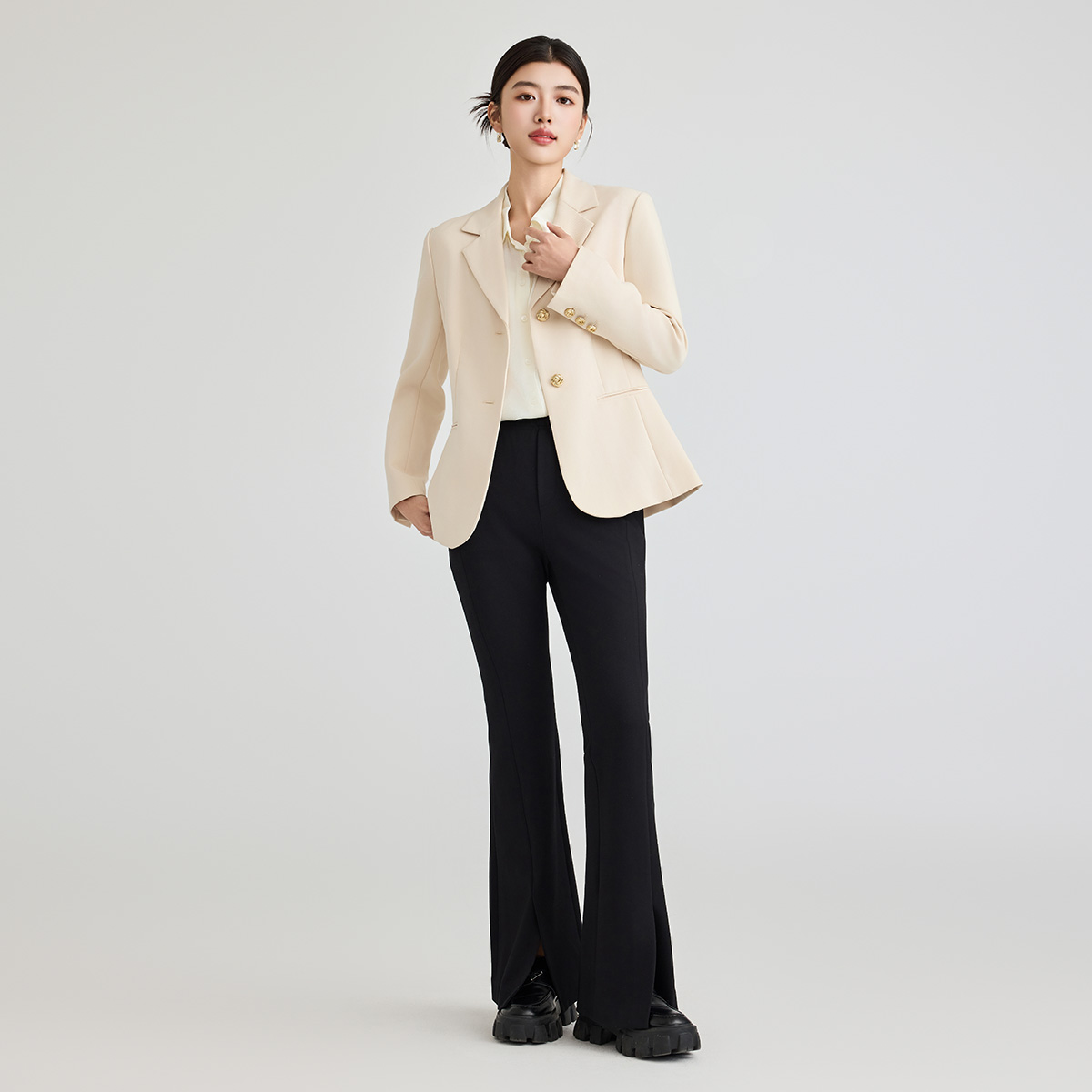 小个子高腰直筒开叉微喇叭马蹄裤 女高级感垂感春秋2025新款 裤 西装