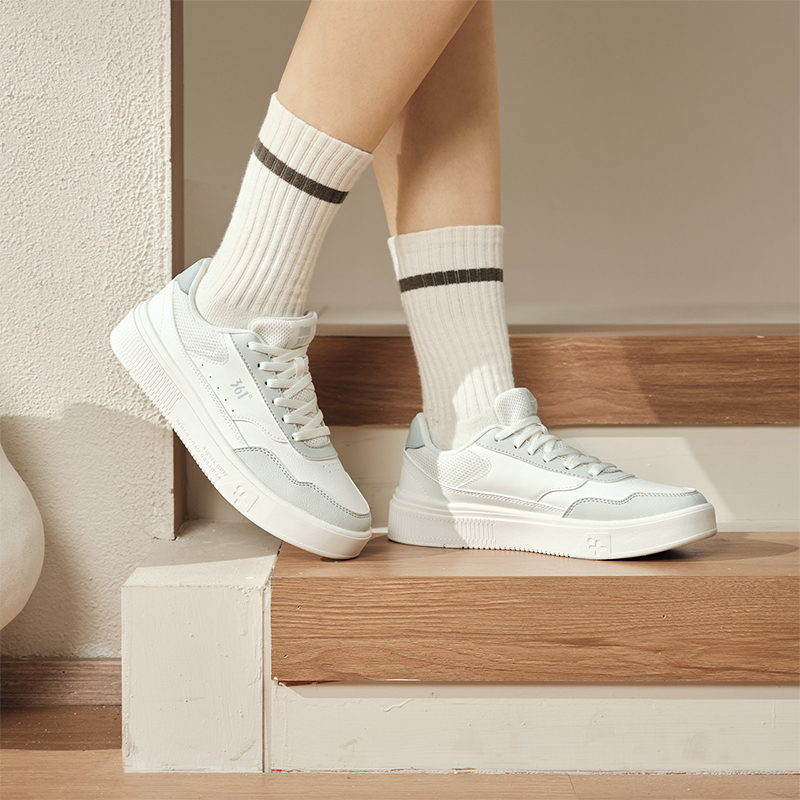 2025秋季 新款 鞋 361女鞋 革面厚底板鞋 运动鞋 子百搭休闲鞋 女 小白鞋