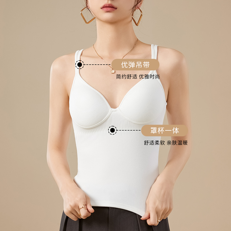 带胸垫一体免穿文胸保暖背心女士冬天2025新款 德绒低领加绒打底衫