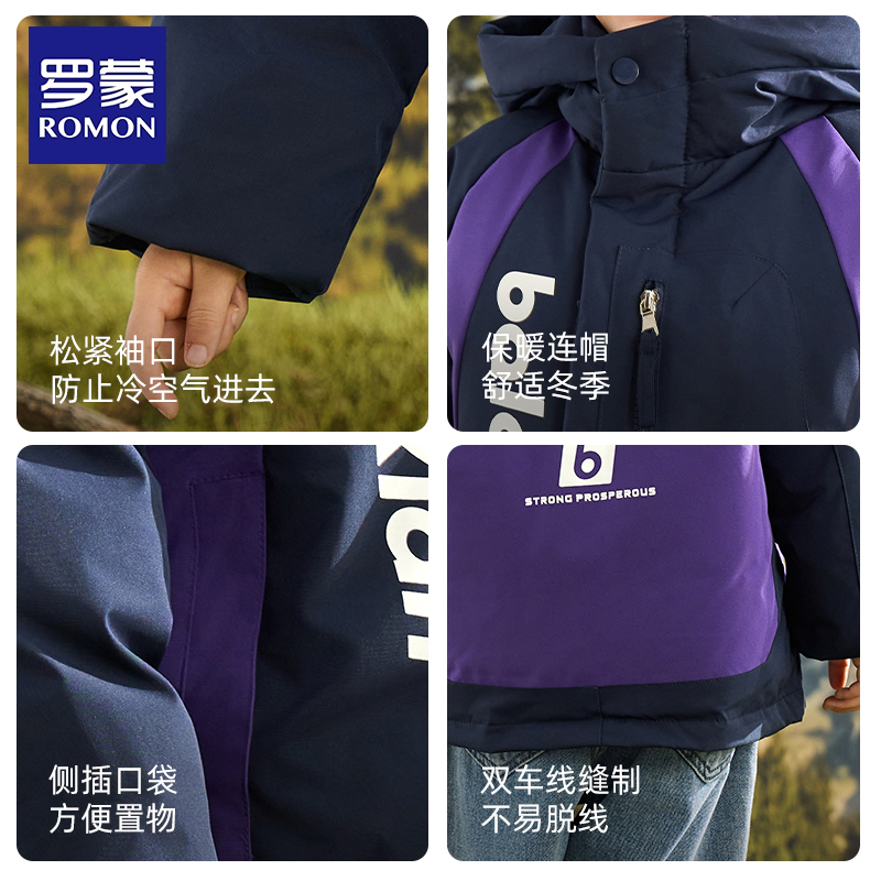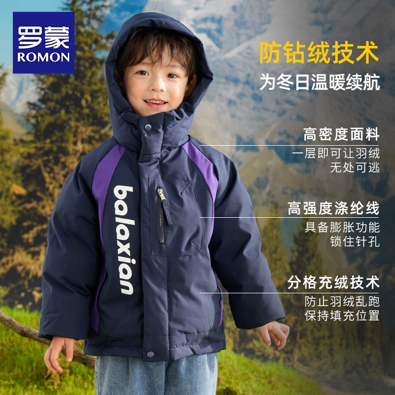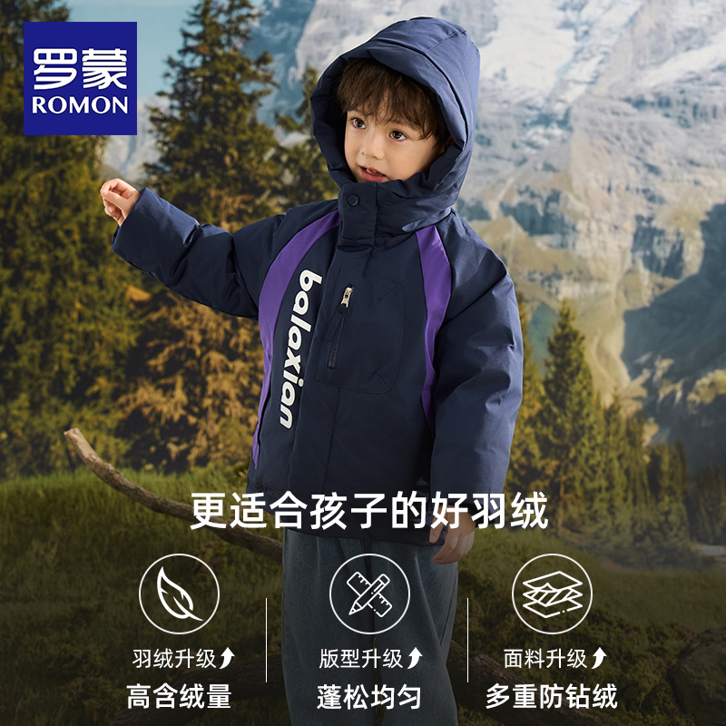 男童冬装 连帽2025新款 加厚保暖羽绒衣外套 儿童羽绒服短款 罗蒙冬季