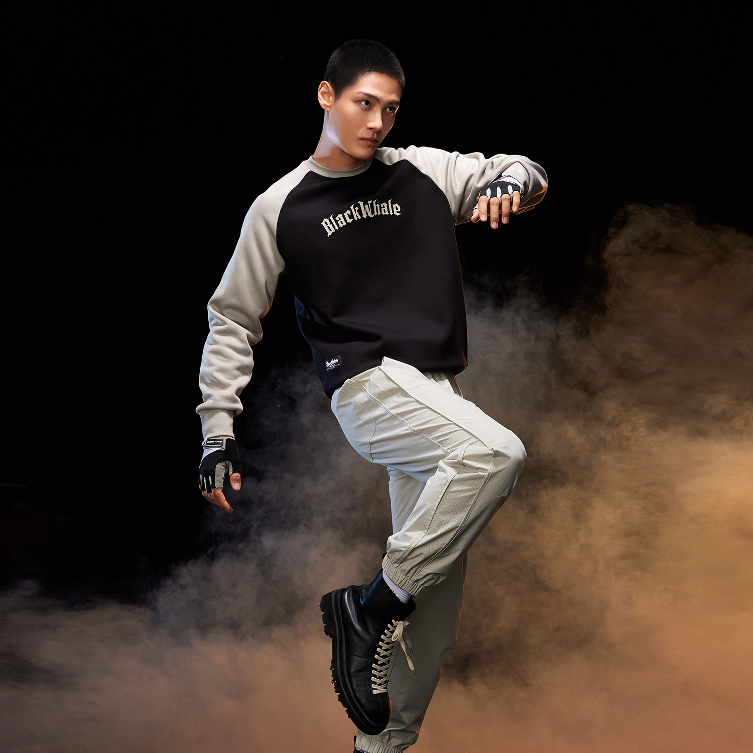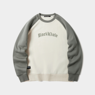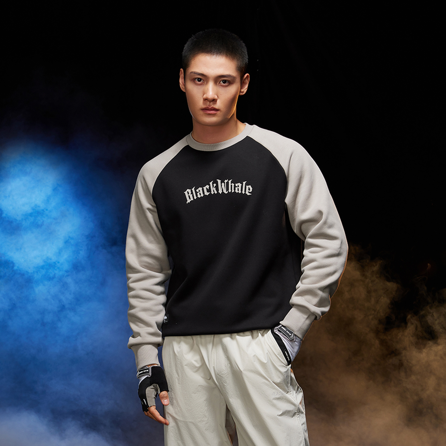 海澜之家旗下黑鲸插肩袖 字母印花加绒 圆领卫衣男冬季
