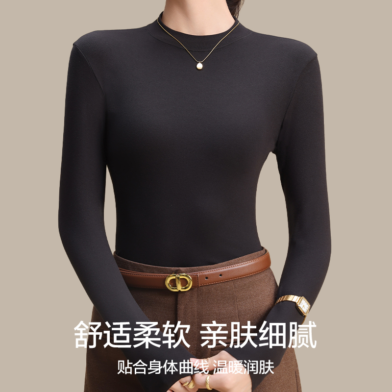 猫人半高领打底衫 女秋冬内搭可外穿中领无痕隐形保暖上衣2025新款